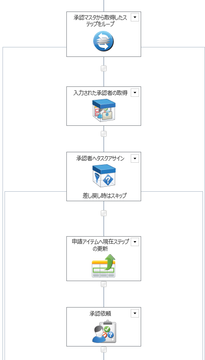 ワークフローの細かい説明は省きますが、例えば上記の承認ルートを取得してループしながら設定された承認者に承認タスクをアサインしていくようなワークフローを組みます。当然ですが、この設定が絶対解ではありません。別にループすることが唯一の正解じゃないですからね。