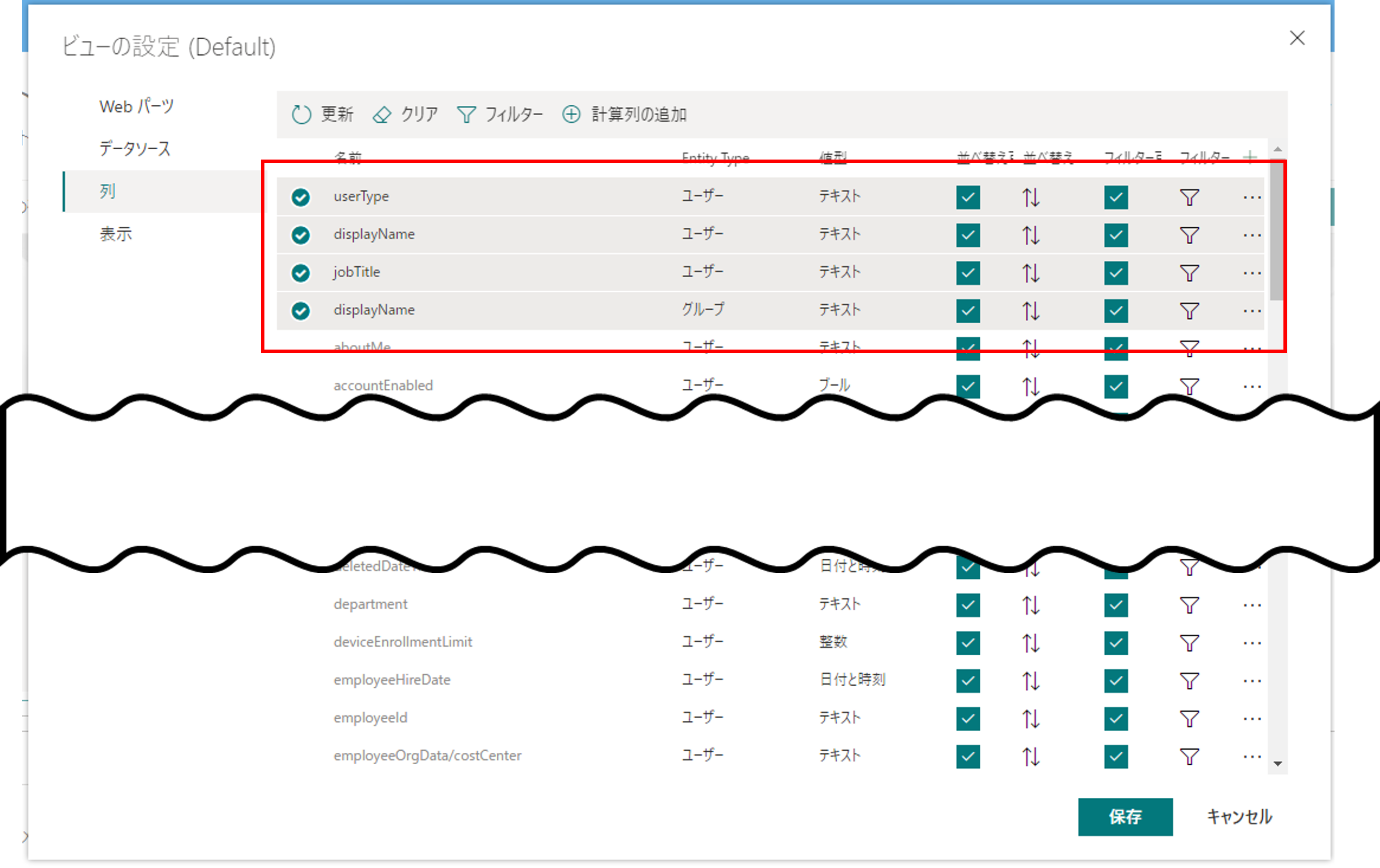 「計算列の追加」をクリックし、以下の計算列を追加し、「保存」をクリックする。