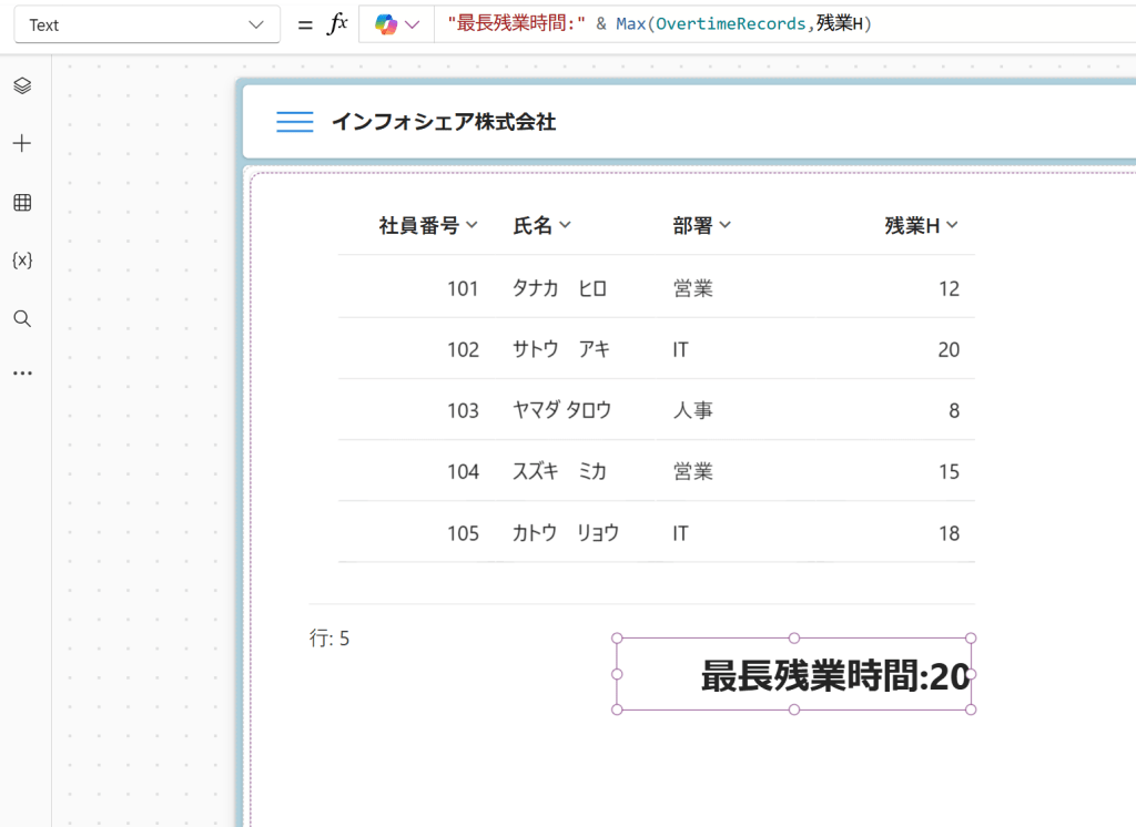 Max関数は、Power Appsの集計関数のひとつで、最大値を割り出すために使います。