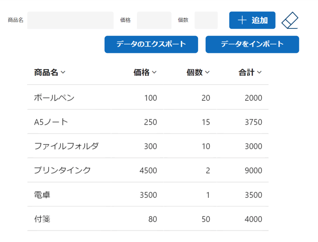 引き続き、事務用品発注記録アプリを例に見ていきます。