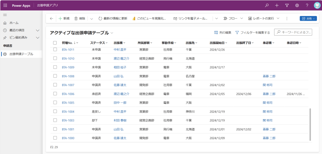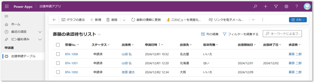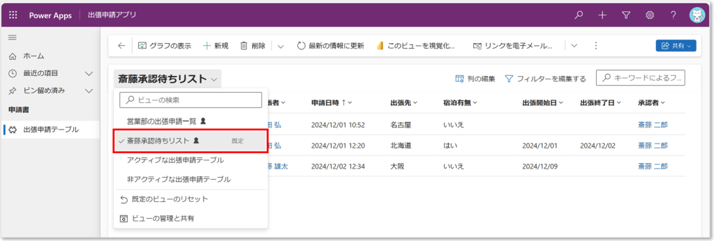 どうやら既定のシステムビューは「アクティブな出張申請テーブル」しかないようです。これでは、Aさんは毎月ビューを操作しなければなりません。面倒だし、業務のミスも起きかねません。