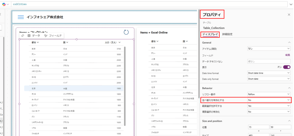 コレクションに入れるデータの取得元をExcelではなくDataverseにしても、結果は同じでした。